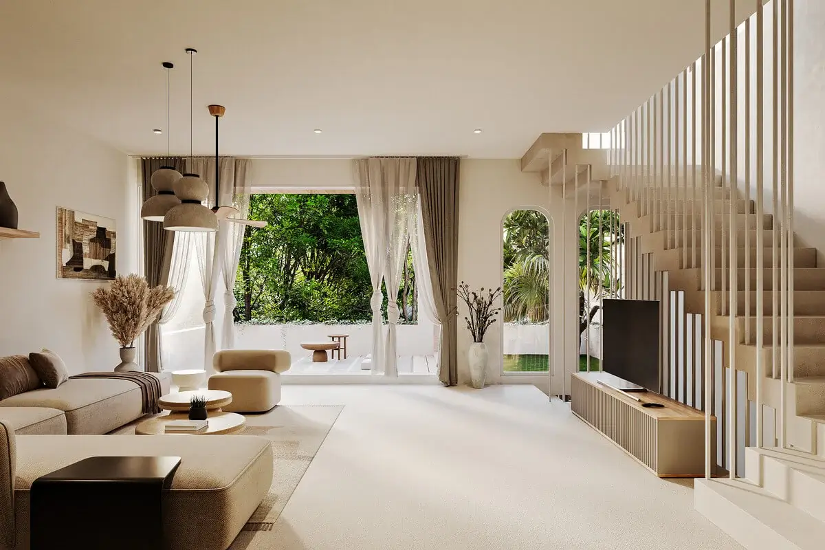 The villa features four spacious bedrooms, expansive living and dining areas, and premium furnishings curated for immediate comfort. Large openings invite natural light throughout, enhancing the openness and warmth of the home.