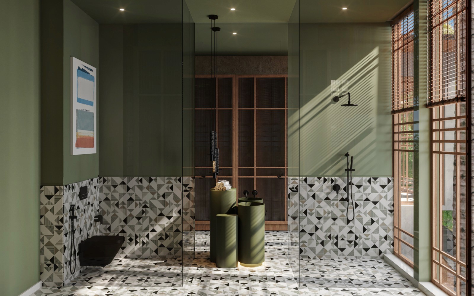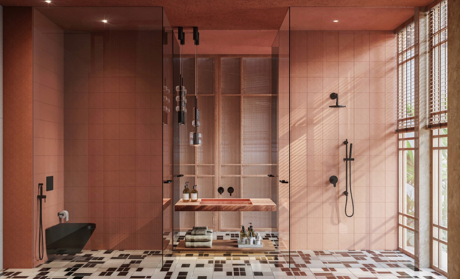 Designer bathrooms with premium fittings and walk-in glass showers